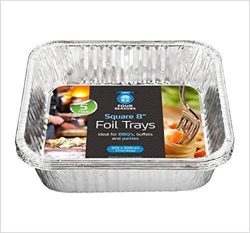Four Season 8 Inch Square Foil Tray Disposable Aluminium Foil Baking/Roasting Pan/Tray (Pack of 5, 10, 15, 20 And 25)